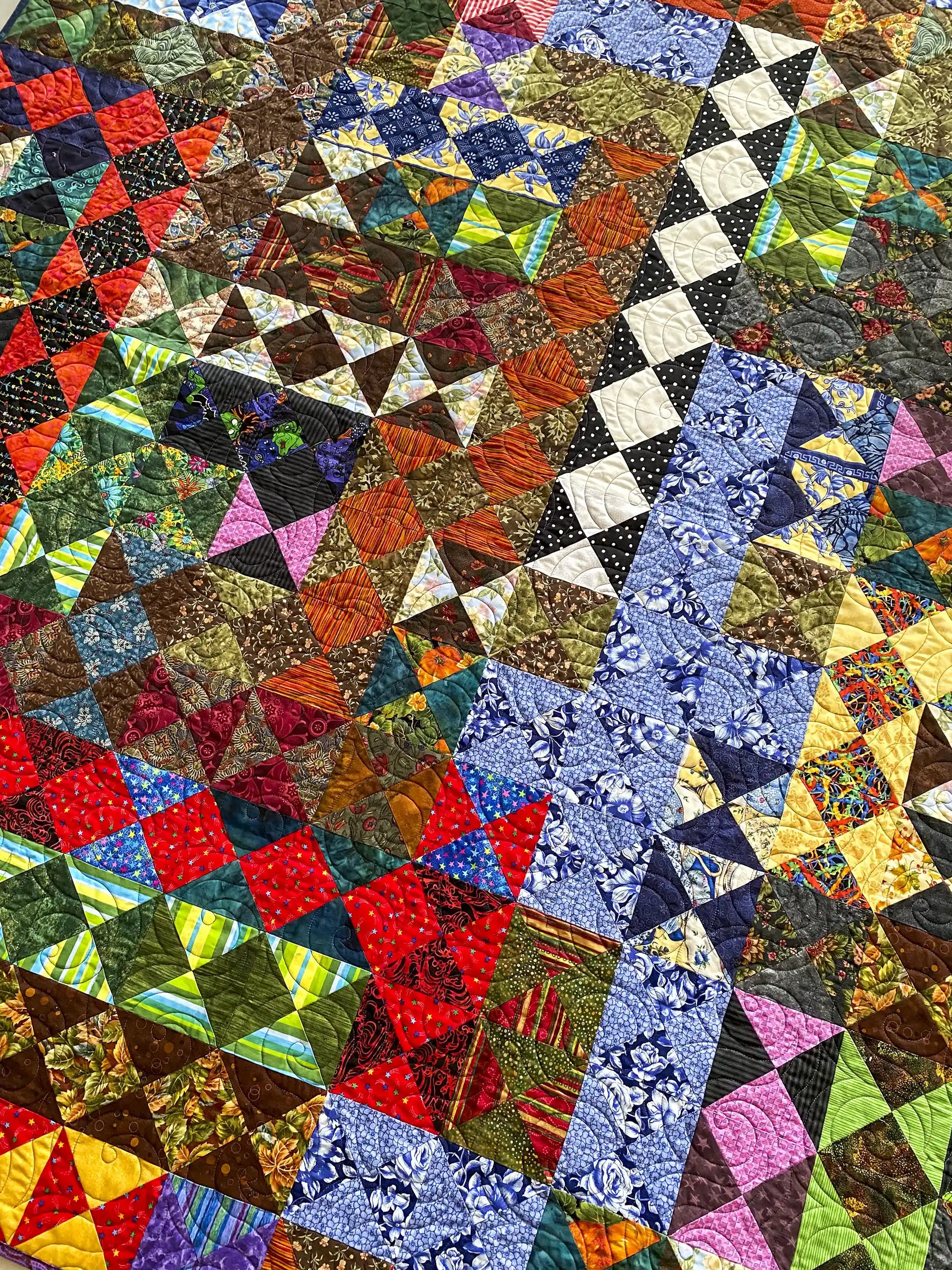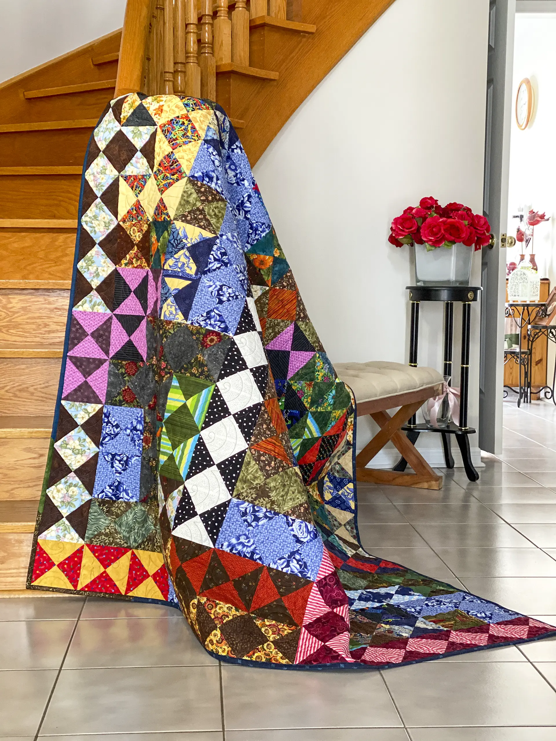Designed by quilter Elaine Theriault, Borderlines! is a stunning scrappy hourglass quilt that turns leftover fabric into a beautiful 63” x 72” masterpiece. Perfect for confident beginners, this stash-busting project uses simple hourglass blocks made from repurposed fabric cut-offs. Follow the step-by-step instructions to create a quilt full of charm and personality!